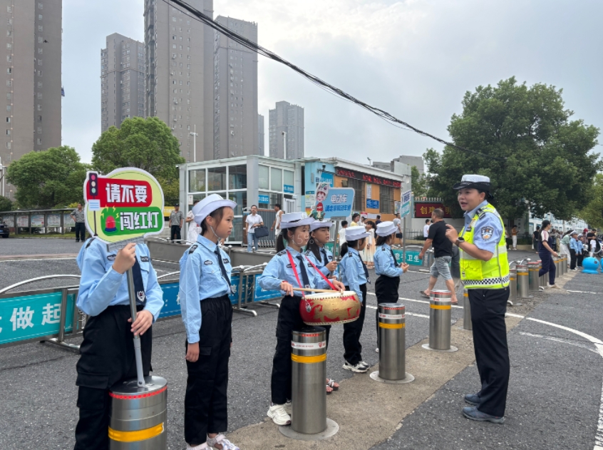秋季開學(xué)伊始,江西省高安市公安局交管大隊(duì)組織民輔警和“少年交警隊(duì)”隊(duì)員在轄區(qū)校園門口維護(hù)秩序,充分發(fā)揮“家+校+警”機(jī)制作用,通過“小手拉大手”帶動全社會共同關(guān)注交通安全。