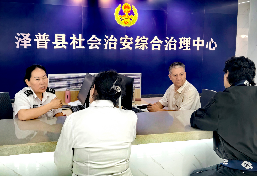 圖為9月18日,澤普縣綜治中心辦事大廳工作人員正在接待來(lái)訪群眾。潘從武 攝