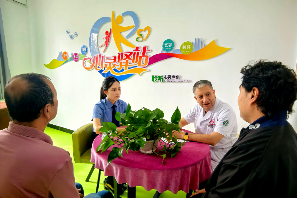 圖為9月18日,在澤普縣綜治中心的心理疏導(dǎo)室,工作人員正在向來(lái)訪群眾開(kāi)展心理咨詢服務(wù)。潘從武 攝