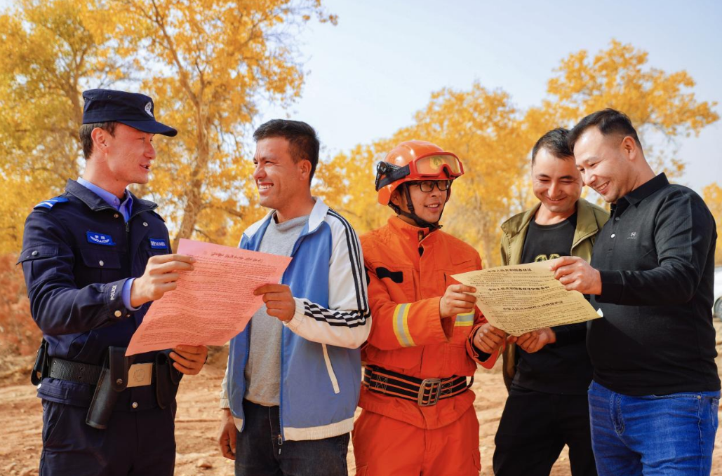 金秋十月,新疆溫宿縣共青團(tuán)鎮(zhèn)薩葉科普胡楊林的6.5萬畝胡楊,由綠轉(zhuǎn)黃,披上盛裝。10月18日,備受期待的溫宿2025胡楊生態(tài)文化旅游節(jié)在這片醉人的美景中如期拉開帷幕。為確保此次活動(dòng)安全、有序、順利進(jìn)行,溫宿縣公安局組建了強(qiáng)有力的安保隊(duì)伍,為八方來客營造一個(gè)平安、祥和、歡樂的旅游環(huán)境。在全力維護(hù)秩序、保障安全的同時(shí),溫宿公安將服務(wù)群眾與普法宣傳融入安保工作之中,成為了金色胡楊林中另一道亮麗的“風(fēng)景線”。