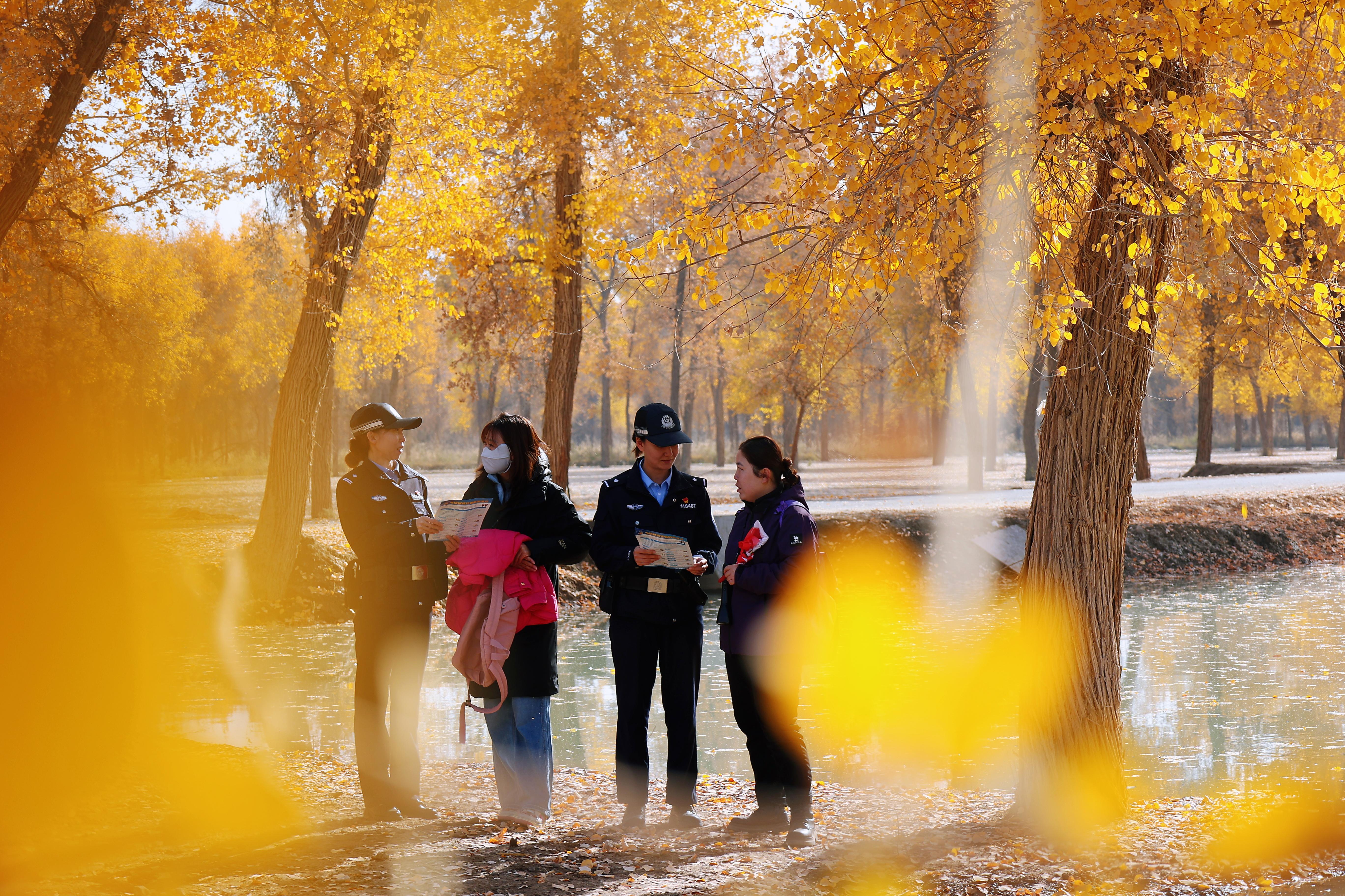 為進(jìn)一步筑牢景區(qū)安全防線、提升游客法治意識,11月3日,新疆維吾爾自治區(qū)阿瓦提縣公安局啟動旅游警務(wù),該局環(huán)境資源和食品藥品犯罪偵查大隊聯(lián)合刀郎部落景區(qū)警務(wù)室民警,開展普法宣傳活動?;顒又?,民警采用步巡、車巡、空巡相結(jié)合的巡防模式,同步推進(jìn)智慧巡防、安全隱患排查、矛盾糾紛化解、便民服務(wù)供給與法治宣傳引導(dǎo)等多項工作,以全方位、精細(xì)化的服務(wù)舉措,為游客營造安全、有序、和諧的環(huán)境。