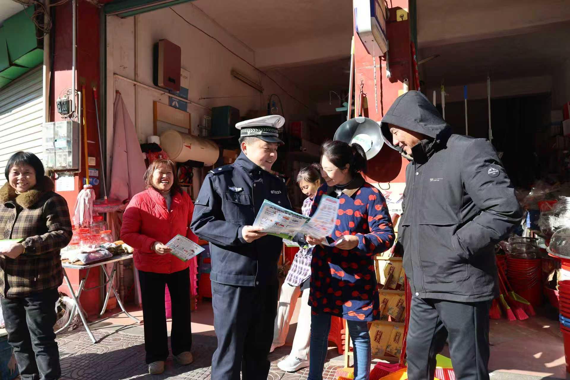 圖為12月15日上午,民警在長勝鎮(zhèn)圩鎮(zhèn)向群眾講解交通安全知識。