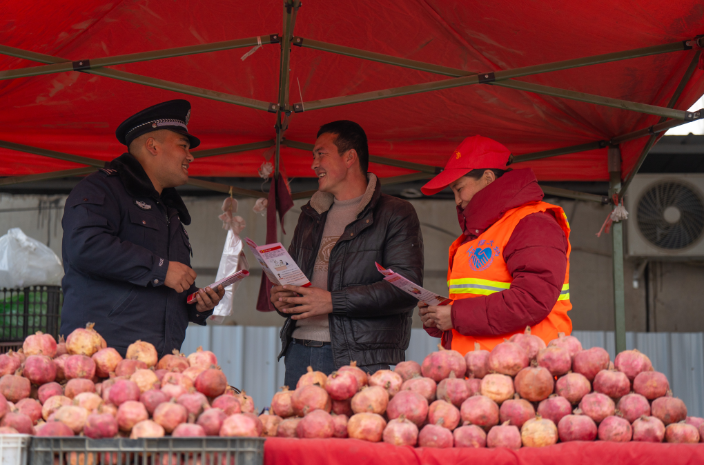 12月12日,新疆維吾爾自治區(qū)葉城縣伯西熱克鎮(zhèn)派出所以“石榴警務(wù)”為抓手,踐行新時(shí)代“楓橋經(jīng)驗(yàn)”,緊扣優(yōu)化營(yíng)商環(huán)境、助力鄉(xiāng)村振興目標(biāo),組織“石榴大媽”“石榴義警”隊(duì)伍,深入集市、石榴種植合作社、小微企業(yè)等重點(diǎn)區(qū)域,開展巡邏防控、隱患排查、普法宣傳、糾紛調(diào)處“一站式”服務(wù)。