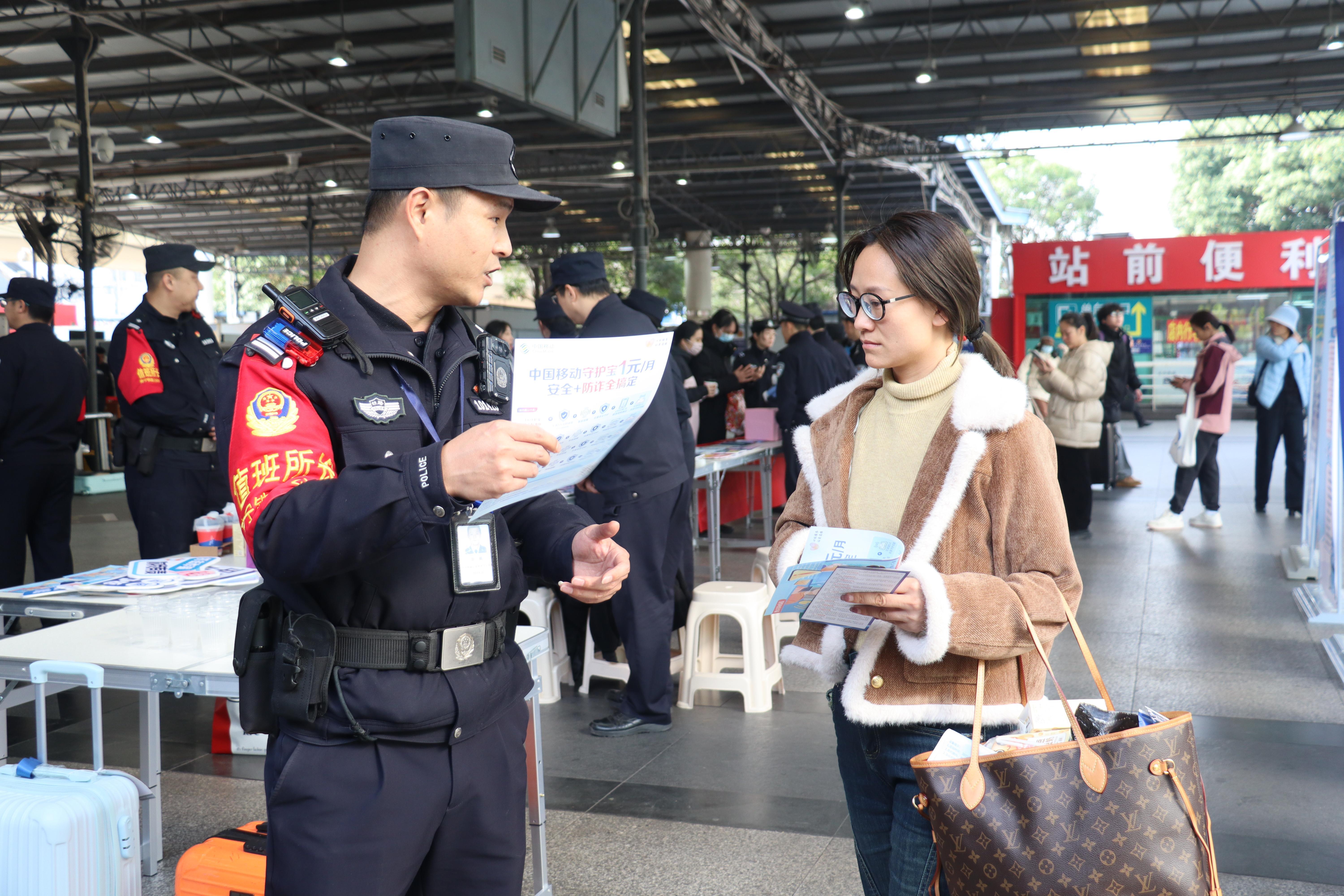 在第六個(gè)中國(guó)人民警察節(jié)來臨之際,1月9日,南寧鐵路公安局南寧公安處南寧站派出所聯(lián)合多部門在南寧站開展110警察節(jié)主題活動(dòng),通過反詐知識(shí)宣傳、游戲互動(dòng)等形式,提升旅客的安全意識(shí)。