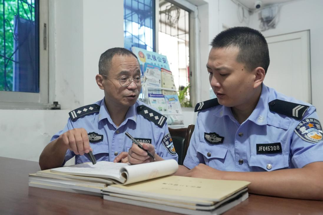 10月1日早會(huì)完畢,老葛就和徒弟萬訊開始“盤貨”,從臺(tái)賬到筆錄,一個(gè)“拎重點(diǎn)”、一個(gè)“記筆記”?!白錾鐓^(qū)民警,沒別的,就是勤快點(diǎn)、仔細(xì)點(diǎn),轄區(qū)里的人口、出租房、單位,每日的警情,什么時(shí)候你不看本子不看電腦,隨時(shí)隨地都能說出來,你就真的出師了......”老葛一邊給萬訊交代著,一邊跨上了他的電瓶車,風(fēng)風(fēng)火火地趕往棕南社區(qū),開展節(jié)日期間消防安全防范宣傳。
