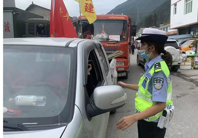 隨后,她和戰(zhàn)友及時(shí)采取單向管制的措施,確保救援力量第一時(shí)間到達(dá)得妥鎮(zhèn)灣東村,全力保障應(yīng)急救援力量,醫(yī)療、電力、救災(zāi)物資等救援力量前往災(zāi)區(qū)的道路暢通有序。在余震不斷的情況下,劉格蘆連續(xù)作戰(zhàn)3天,有序疏散社會(huì)車輛300余輛,為搶險(xiǎn)機(jī)具、救援隊(duì)伍進(jìn)入現(xiàn)場(chǎng)爭(zhēng)取了時(shí)間。
