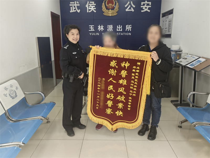“感謝警察同志迅速把我母親的3萬元追回來,如果不是你們平時(shí)反詐宣傳做得好,我也不會(huì)第一時(shí)間報(bào)警,真的太感謝你們了!”12月1日,轄區(qū)周婆婆和女兒特意到玉林派出所為民警送來一面印有“神警雄風(fēng)破案快 感謝人民好警察”的錦旗,表達(dá)對(duì)民警為其追回被騙現(xiàn)金的感謝之情。