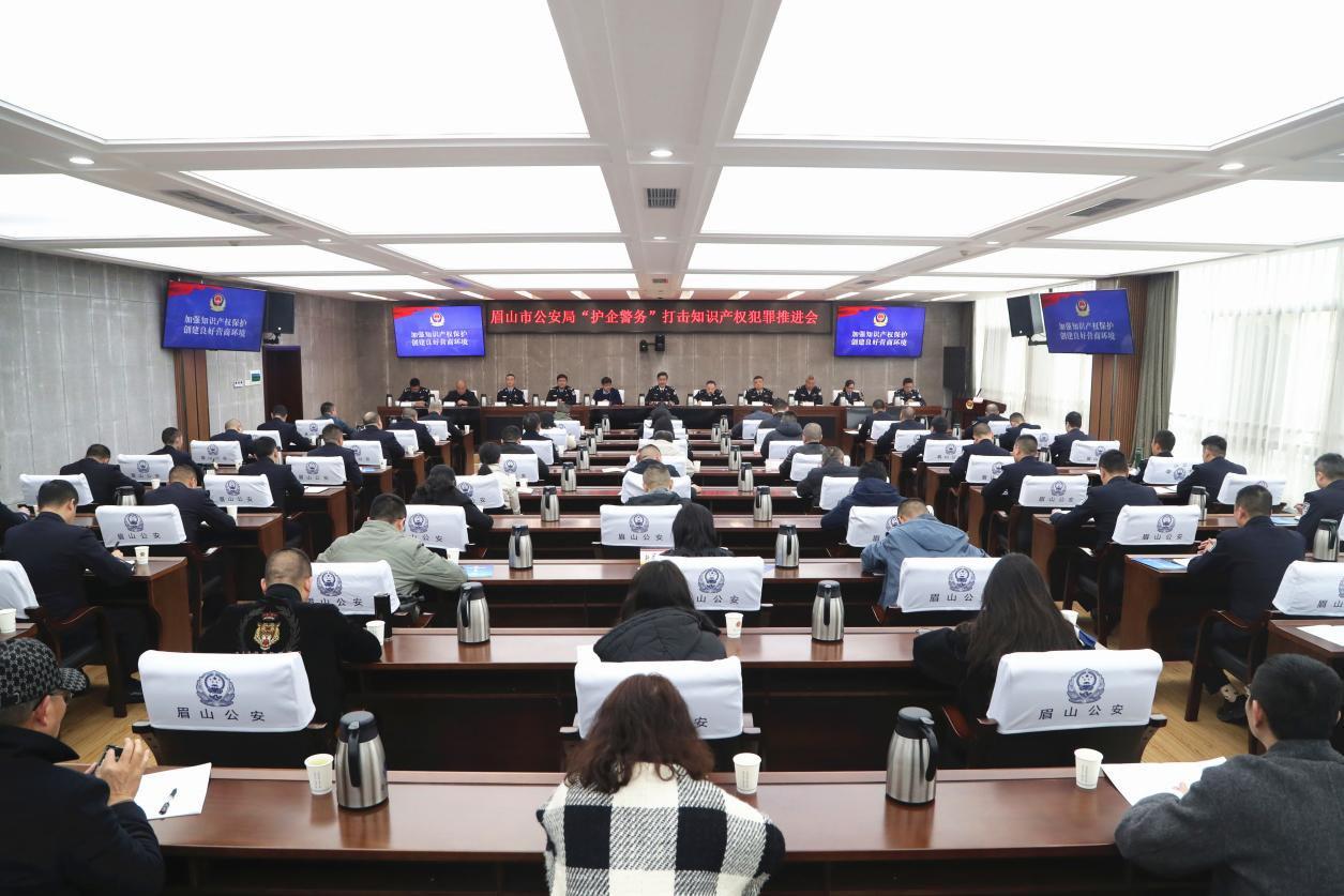 近日,四川省眉山市公安局召開的“護(hù)企警務(wù)”打擊知識產(chǎn)權(quán)犯罪推進(jìn)會(huì)。