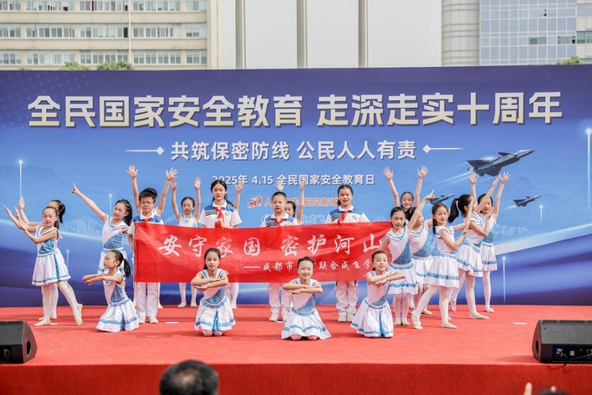 活動中,泡桐樹成飛幼兒園的小朋友向現(xiàn)場領(lǐng)導(dǎo)和群眾介紹“保密安全”主題繪畫作品,生動傳遞了兒童對國家安全的理解?;顒蝇F(xiàn)場為黃田壩街道七支“成飛嬢嬢”志愿隊伍授旗,據(jù)了解,“成飛嬢嬢”是由轄區(qū)的熱心阿姨組成的、積極投身各類公益服務(wù)的志愿者隊伍,在積極參與國家安全相關(guān)工作方面,她們將通過社區(qū)講座、發(fā)放宣傳手冊等形式,向身邊居民宣傳國家安全理念?!俺娠w嬢嬢”代表許向陽宣讀《倡議書》,倡導(dǎo)大家為社區(qū)安全和國家安全做出貢獻。石室聯(lián)合成飛學(xué)校學(xué)生通過精彩的文藝表演,向群眾傳遞保密意識。