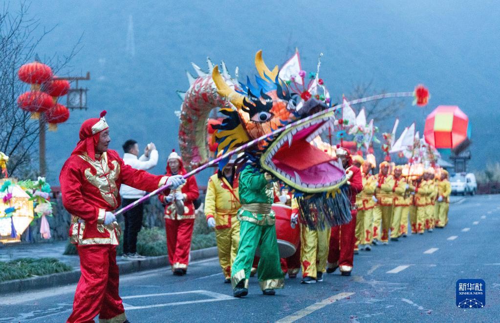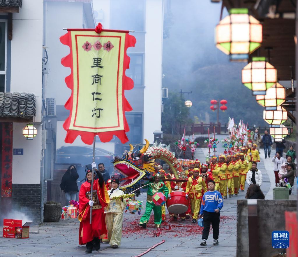 當日,浙江省杭州市淳安縣里商鄉(xiāng)舉行2023元宵節(jié)花燈巡游,為當?shù)厣洁l(xiāng)增添了熱鬧的元宵氛圍。