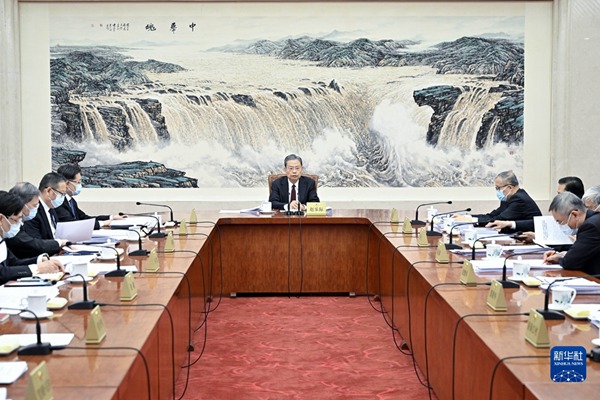 4月14日下午,十四屆全國人大常委會第二次委員長會議在北京人民大會堂舉行。趙樂際委員長主持會議。新華社記者 殷博古 攝