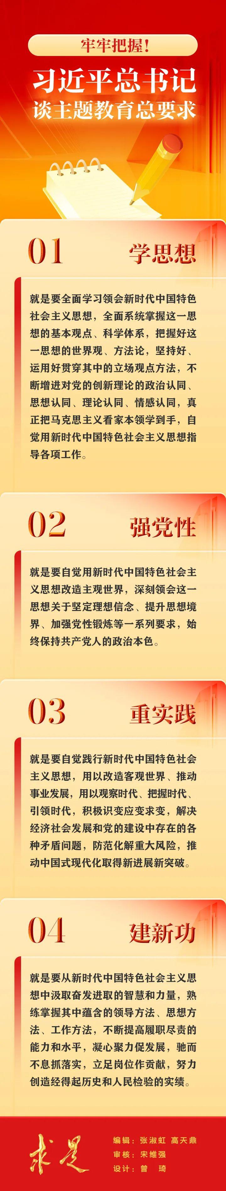 在2023年第9期《求是》雜志刊發(fā)的習(xí)近平總書(shū)記重要文章《在學(xué)習(xí)貫徹習(xí)近平新時(shí)代中國(guó)特色社會(huì)主義思想主題教育工作會(huì)議上的講話》中,總書(shū)記強(qiáng)調(diào)要“牢牢把握總要求”,“把這一總要求貫穿這次主題教育全過(guò)程”。