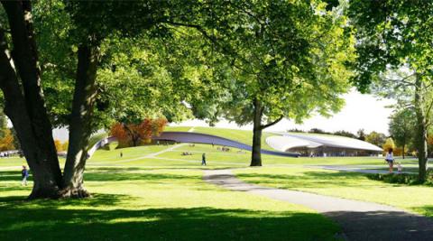 “我們將東北側一棵姿態(tài)繁茂的大樹保留下來,設計成以古樹為中心的下沉庭院。我們希望把永久會址主會場營造成‘森林中的會議中心’,讓更多綠色開放的公共場域擁抱城市與市民。”焦力表示。