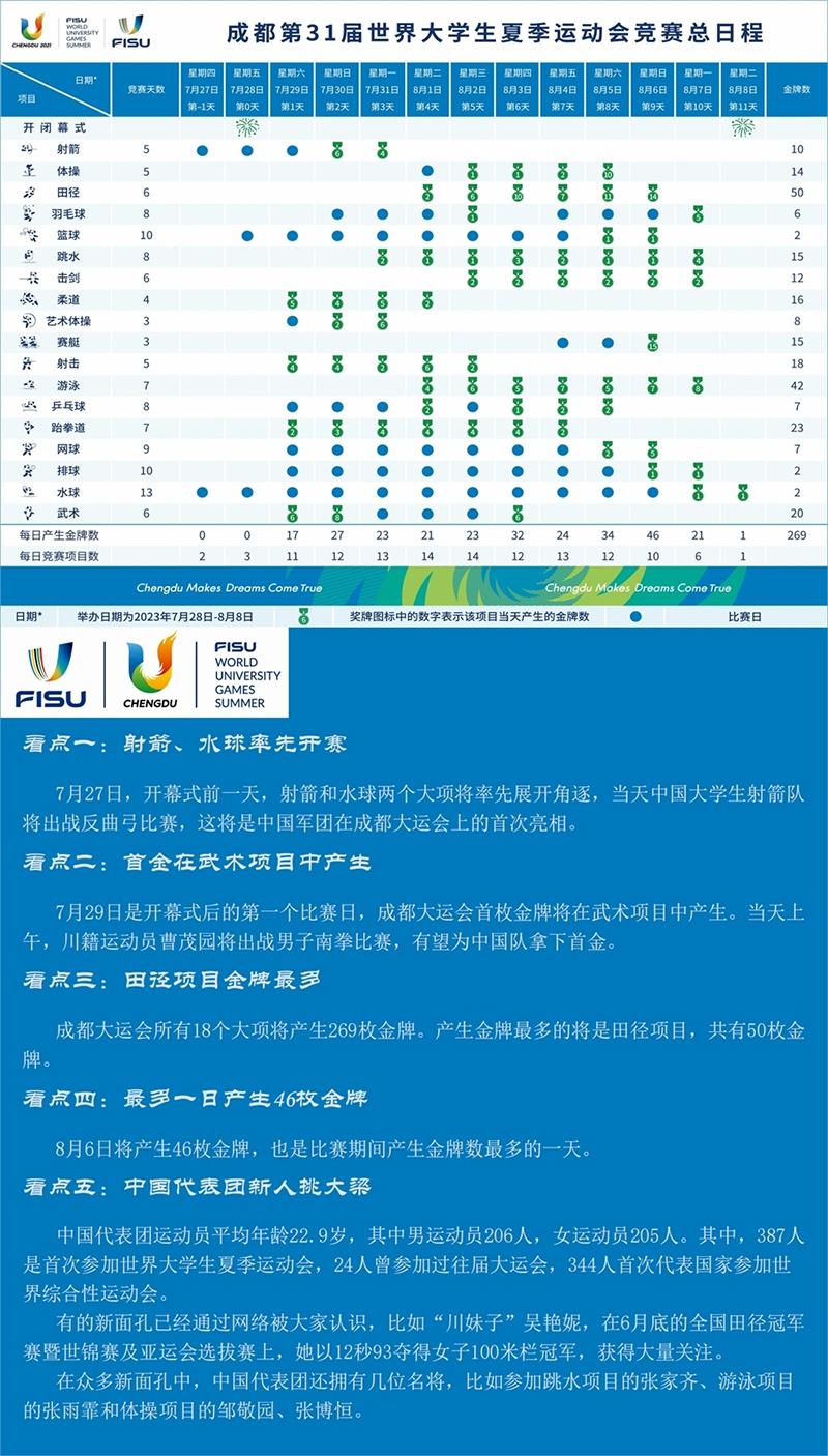 一圖了解成都大運會賽程及看點