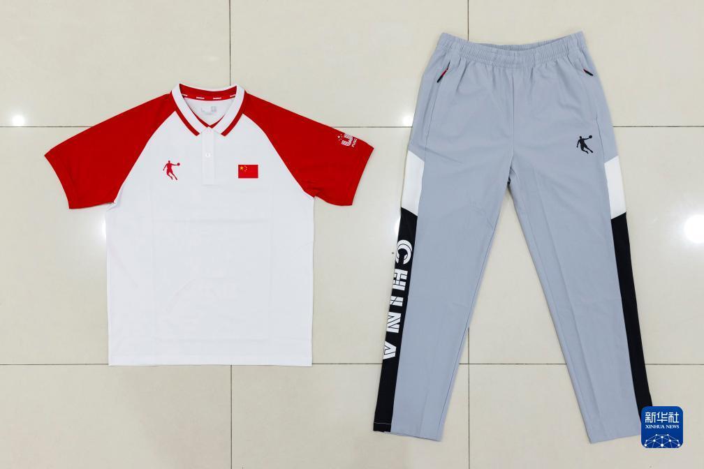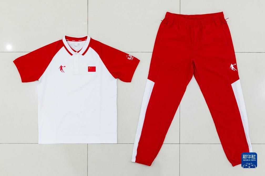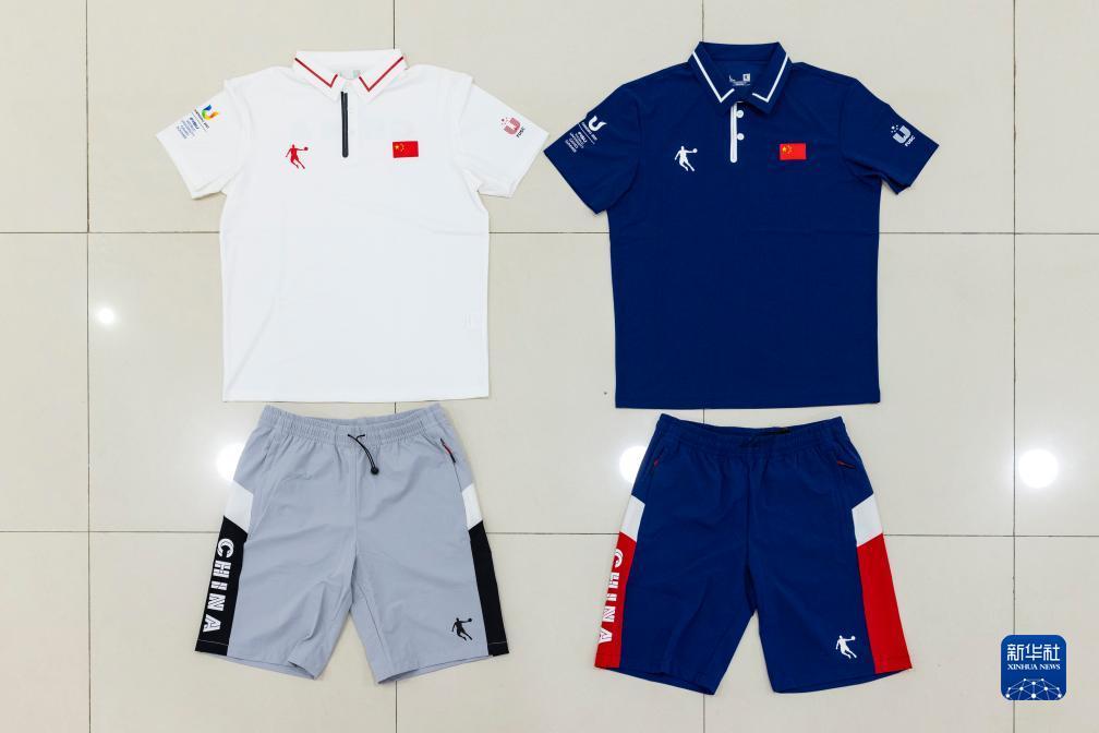 這是7月24日拍攝的第31屆世界大學生夏季運動會中國代表團成員配發(fā)裝備中的POLO短T恤衫和長褲。新華社記者 沈伯韓 攝