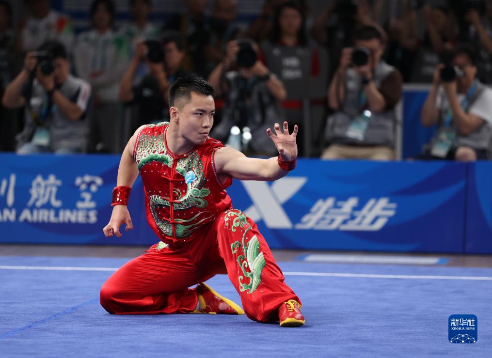 新華社成都7月29日電 29日,成都大運(yùn)會武術(shù)項(xiàng)目男子南拳比賽中,中國選手曹茂園奪冠。這是本屆大運(yùn)會的首金,也是中國大學(xué)生體育代表團(tuán)的首金。