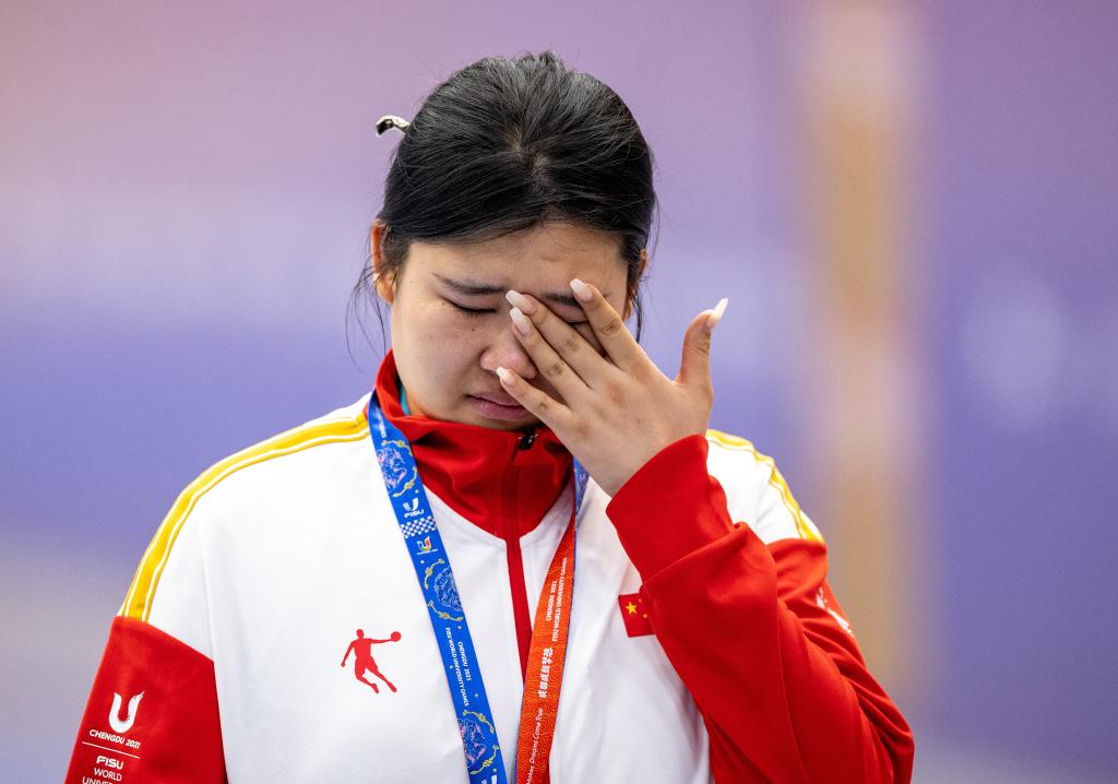 新華社成都8月1日電(記者王春燕、姚友明)中國大學生體育代表團1日在成都大運會繼續(xù)高歌猛進,共有10枚金牌入賬,以27金9銀10銅的成績繼續(xù)領跑金牌榜。賽場內(nèi)外,大學生運動員們也用歡笑與淚水“定格”青春的模樣。