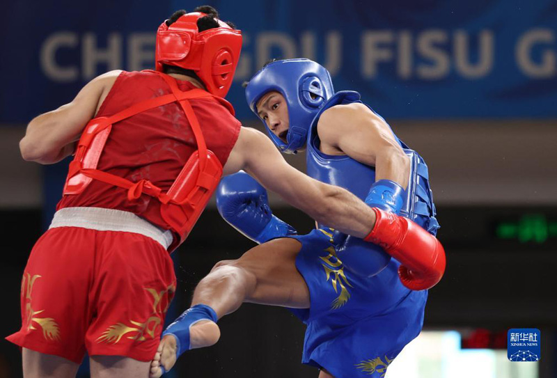 當(dāng)日,在成都第31屆世界大學(xué)生夏季運(yùn)動會武術(shù)散打男子80公斤級決賽中,中國選手柳文龍以2比0戰(zhàn)勝伊朗選手阿里,獲得冠軍。