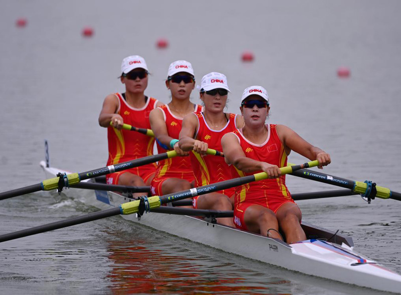 男子四人單槳和女子四人單槳是中國隊強項。由宋春曉、宗照山、劉江宇和肖揚組成的中國隊在男子四人單槳決賽中,以四個計時點排名第一、最終用時6分09秒46奪金。女子四人單槳決賽中,張書賢、劉曉鑫、王子鳳和徐星葉各自體能、技術實力過硬,每一槳的動作都極其整齊、宛如一人,她們最終以6分41秒05的成績,為中國隊再添一金。