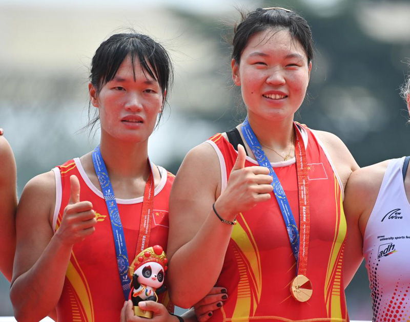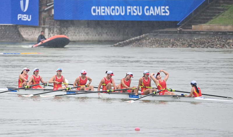 在女子八人單槳有舵手決賽中,中國女將們“一騎絕塵”,以6分25秒03的成績獲得金牌。來自江西師范大學的吳伊慧奪冠后說:“賽艇項目比較冷門,希望通過大運會讓大家更多地了解賽艇的魅力。”