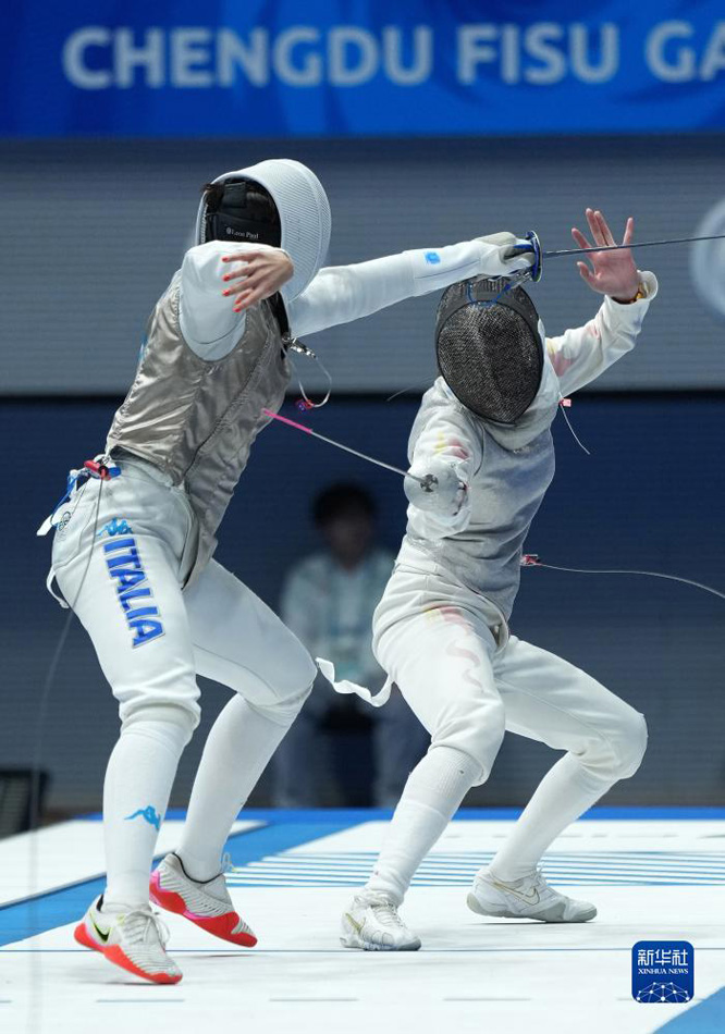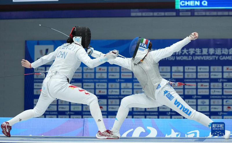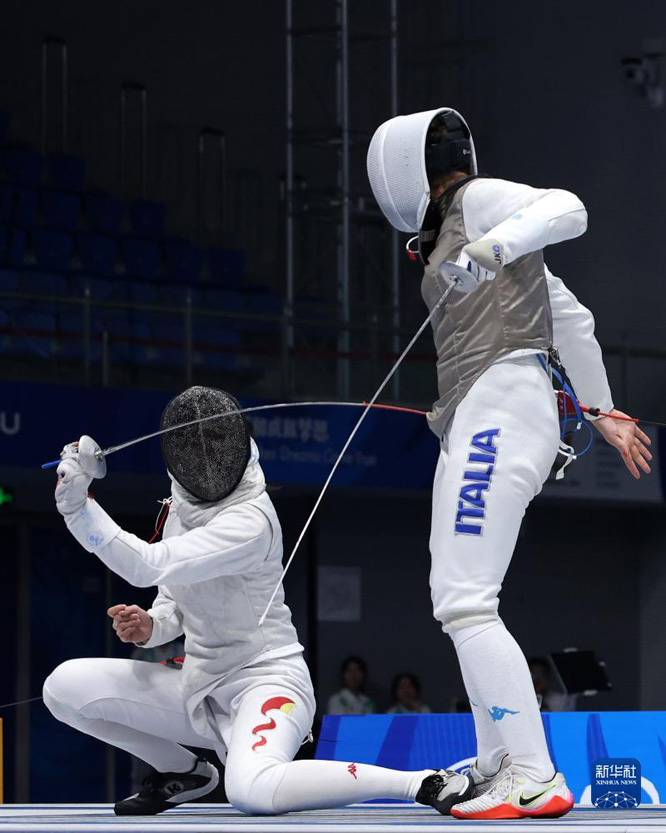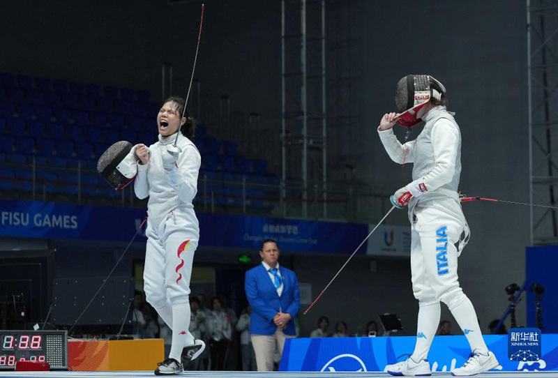 當日,在成都舉行的第31屆世界大學生夏季運動會擊劍女子花劍團體金牌賽中,中國隊以45比22戰(zhàn)勝意大利隊,獲得金牌。