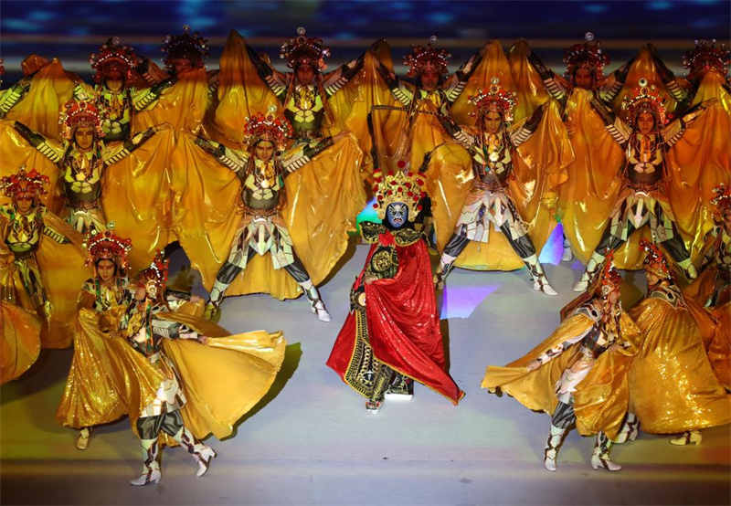 7月28日,演員在大運會開幕式上表演川劇變臉。新華社記者江宏景攝