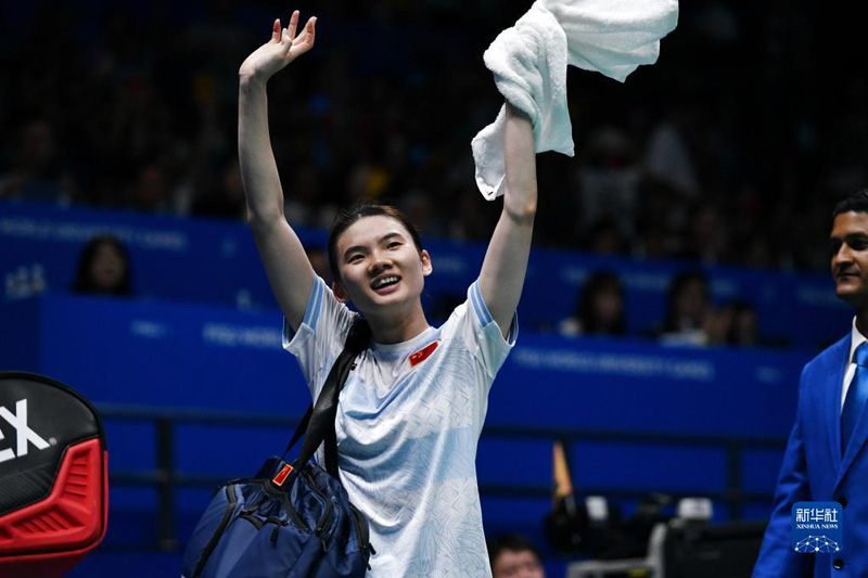 8月7日,韓悅在比賽后向觀眾揮手致意。新華社記者 張端 攝
