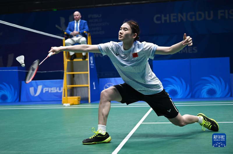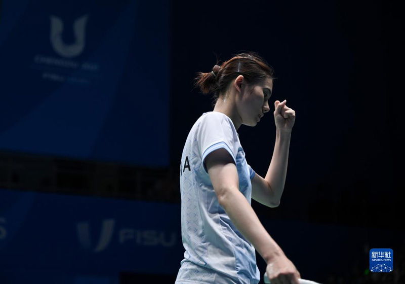 當日,在成都舉行的第31屆世界大學生夏季運動會羽毛球女子單打決賽中,中國選手韓悅以2比0戰(zhàn)勝韓國選手金佳覽,獲得冠軍。