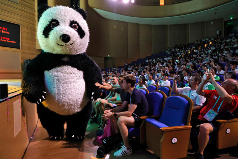 不同膚色、不同語言的大學生運動員們,在不同競技項目的賽場上揮灑汗水,奮力拼搏,在賽場外卻幾乎擁有共同的喜好——大熊貓。一場黑白色的大熊貓“圈粉”旋風在成都勁吹。