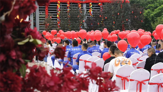 “星辰大海,夢想自有夢想的力量,仰望在銀河的想象,我們起航……”活動最后,全體新人與觀禮人員共同合唱《星辰大海》。愛在星辰大海,新人們把愛的誓言唱響在航天大院,幸福的歌聲在青山之間久久回蕩……