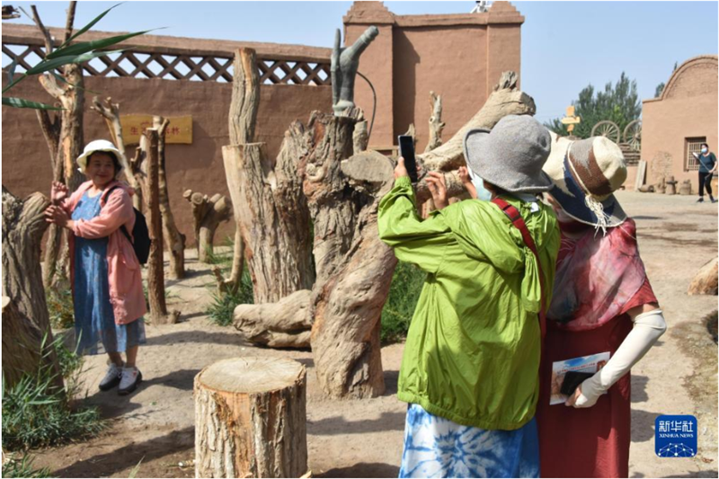 8月30日,游客在位于新疆吐魯番市的坎兒井樂(lè)園景區(qū)拍照。