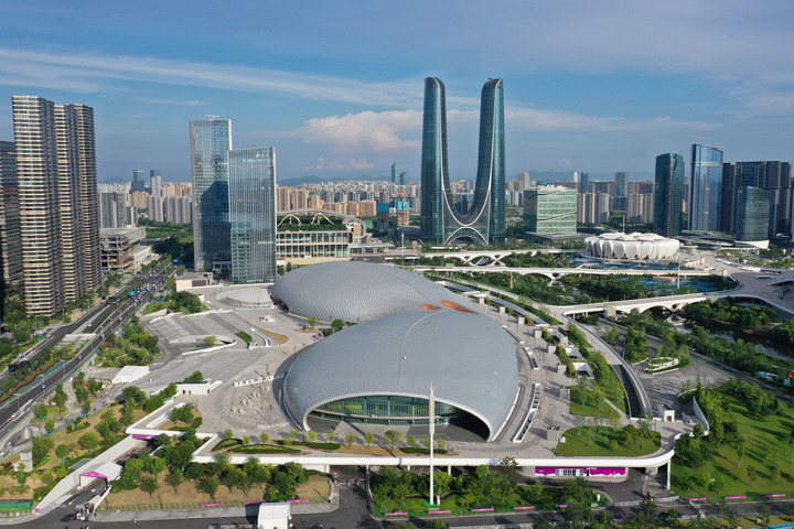 這是2023年6月28日拍攝的杭州奧體中心游泳館、體育館(無(wú)人機(jī)照片)新華社記者 黃宗治 攝