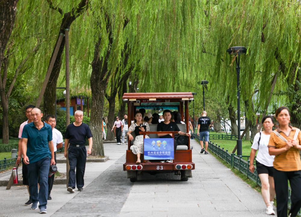 9月20日,游客乘坐杭州西湖景區(qū)觀光車游覽。新華社記者顏麟蘊 攝