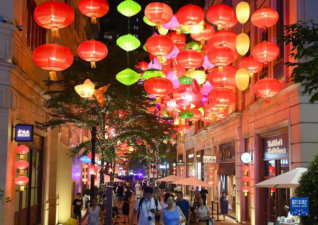 9月17日,人們在利東街觀賞彩燈。