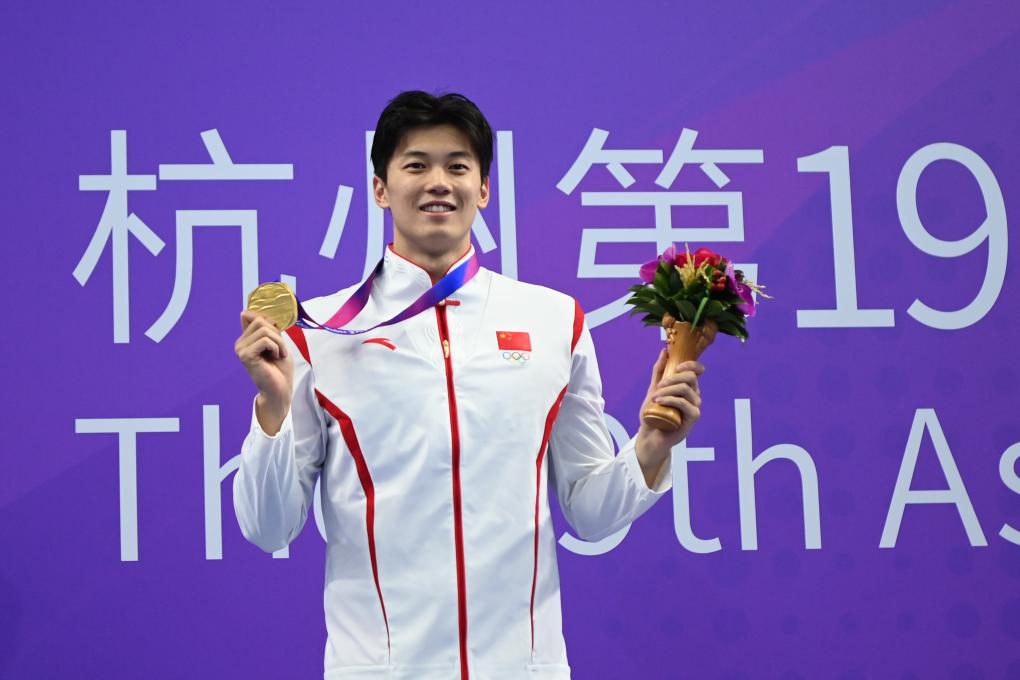 9月24日,中國選手汪順在頒獎(jiǎng)儀式上。新華社記者 黃宗治 攝