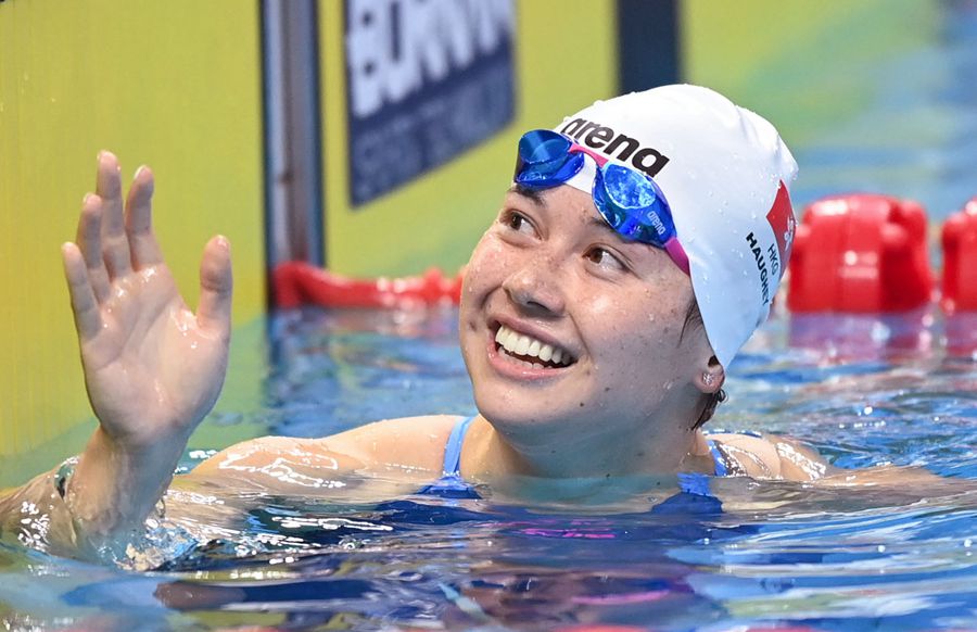 9月26日,中國香港名將何詩蓓以52秒17打破女子100米自由泳亞洲紀錄并奪冠,這也是她本屆賽事的第二枚金牌。