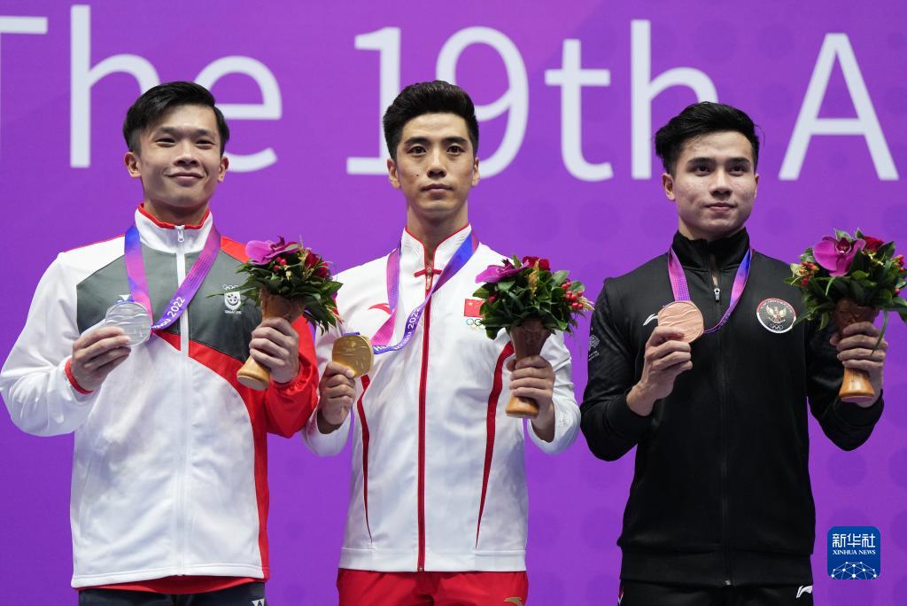 9月27日,冠軍中國選手常志昭(中)、亞軍新加坡選手林思韋(左)、季軍印度尼西亞選手塞拉夫·納羅·西雷加爾在頒獎儀式上。
