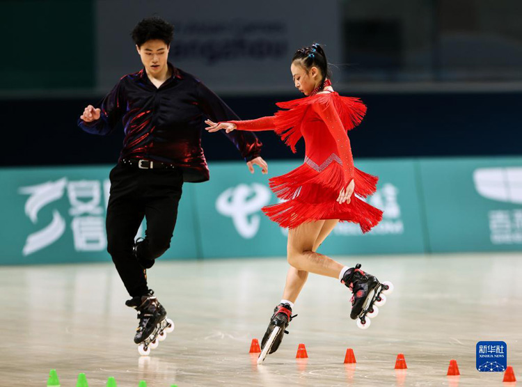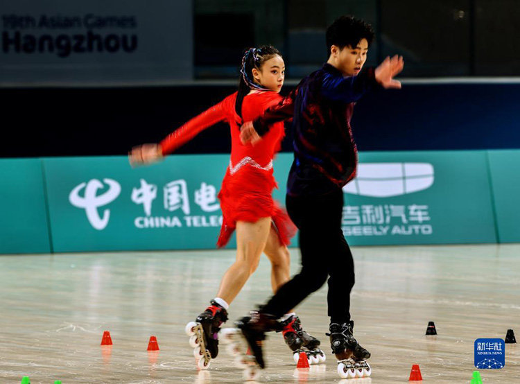 當日,在杭州亞運會混合自由式輪滑男女雙人花式繞樁決賽中,中國組合張顥/朱思怡獲得冠軍。