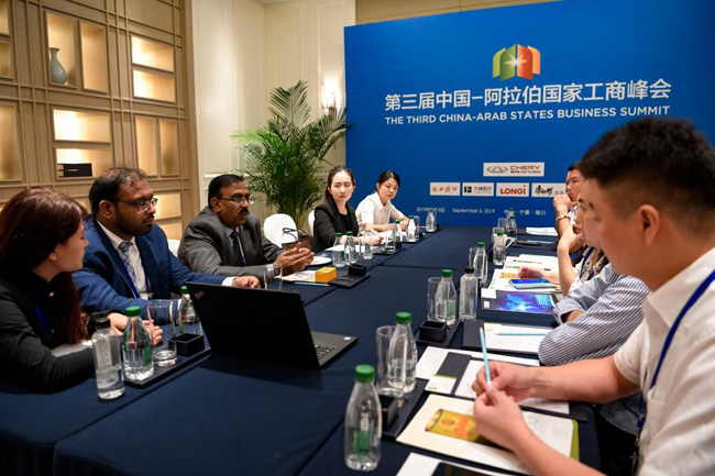 2019年9月5日,迪拜工商會(huì)代表與中方代表在第四屆中國(guó)-阿拉伯國(guó)家博覽會(huì)期間進(jìn)行洽談。新華社記者馮開(kāi)華攝