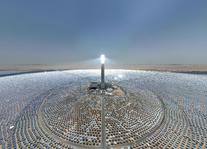 這是2022年8月在阿聯(lián)酋迪拜拍攝的上海電氣迪拜光熱光伏復(fù)合項(xiàng)目(無(wú)人機(jī)照片)。新華社發(fā)