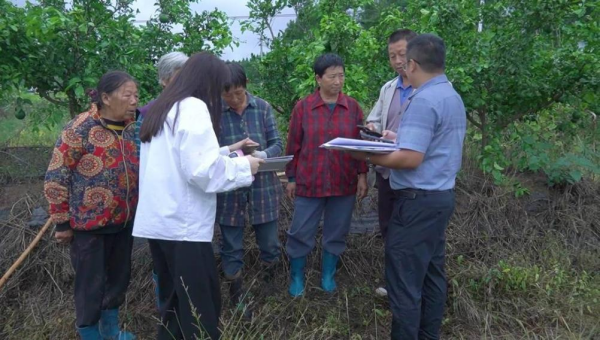 網(wǎng)信辦工作人員為村民講解普法銘牌內(nèi)容