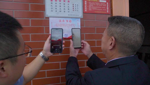 在潮水壩村,“戶戶有銘牌,一戶一銘牌”。銘牌上印有二維碼,新增個人信息保護等網(wǎng)絡(luò)普法知識,內(nèi)容豐富。村里家家戶戶,按照生產(chǎn)生活需要,有針對性地,都貼上了不同類型的法治銘牌。