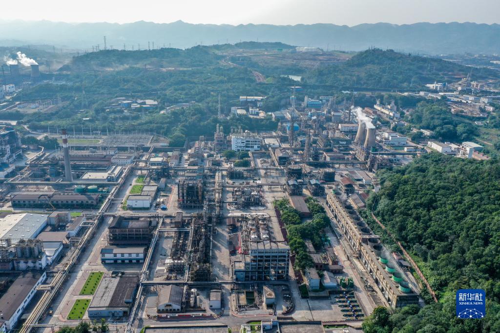 這是10月17日拍攝的中國石化川維化工廠區(qū)(無人機(jī)照片)。