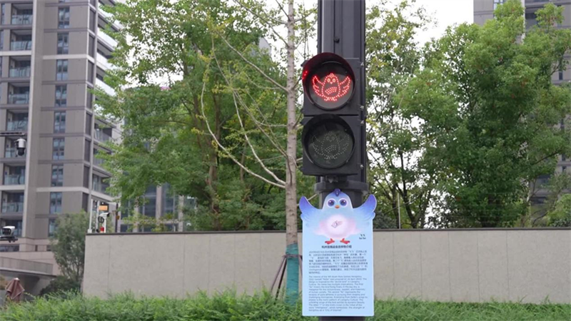在亞殘運(yùn)村的主干道拾久街邊,曾經(jīng)火遍杭城的“三小只”造型交通信號燈,如今換上了新裝,可愛的飛飛接替了“三小只”的位置,在路口“站崗”。紅綠變化間,飛飛雙翼展開、振翅翱翔,格外引人注目。