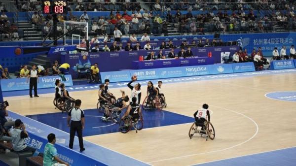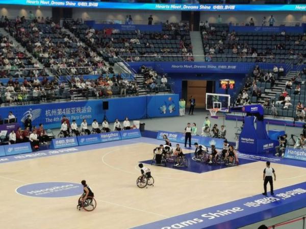 10月19日,杭州亞殘運會輪椅籃球項目小組賽,率先在杭州奧體中心體育館開打。