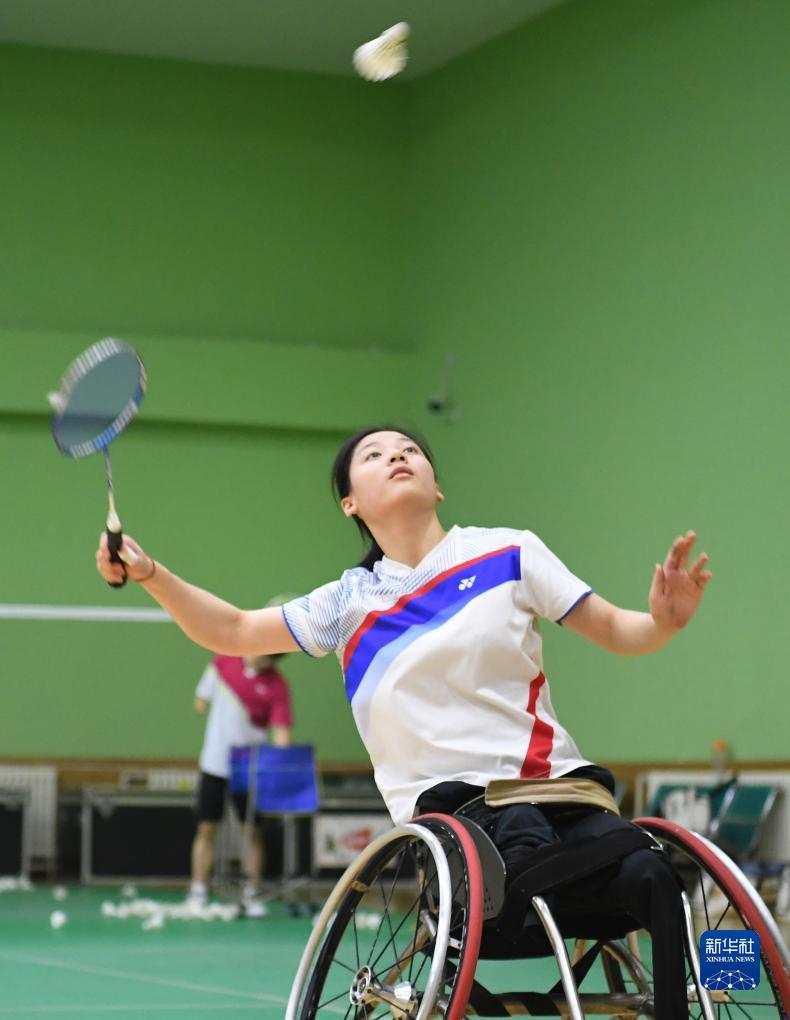 9月12日,中國殘疾人羽毛球隊運動員屈子墨在訓練中。新華社記者 朱旭東 攝