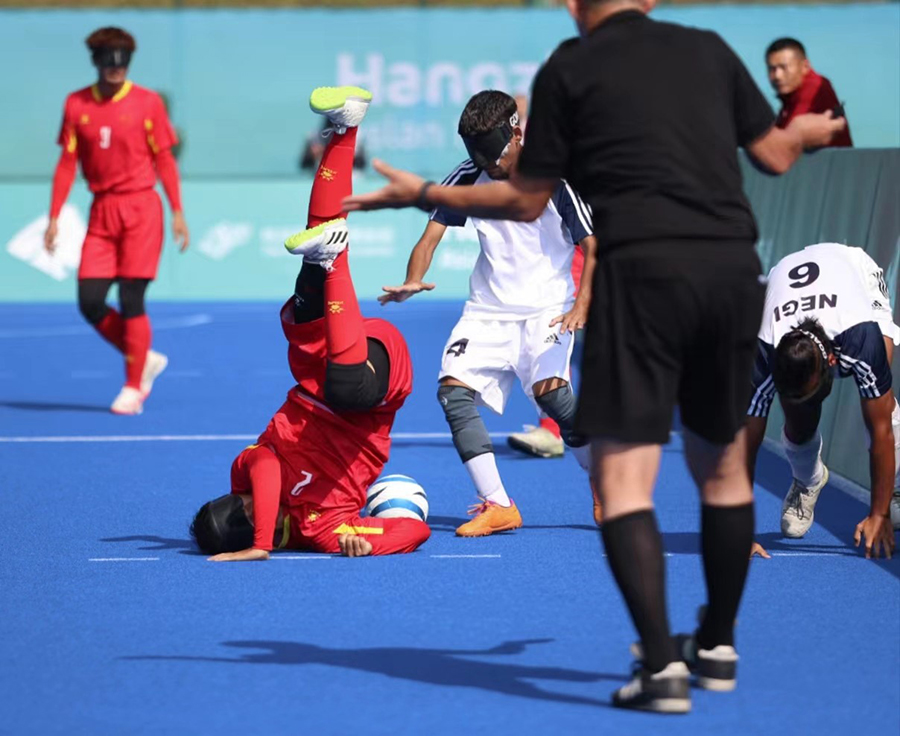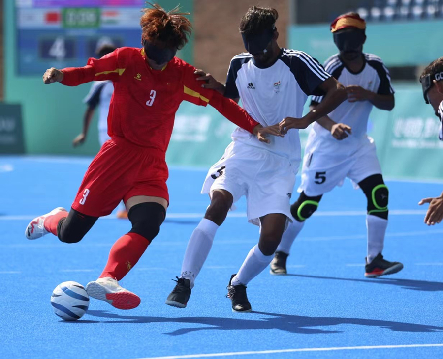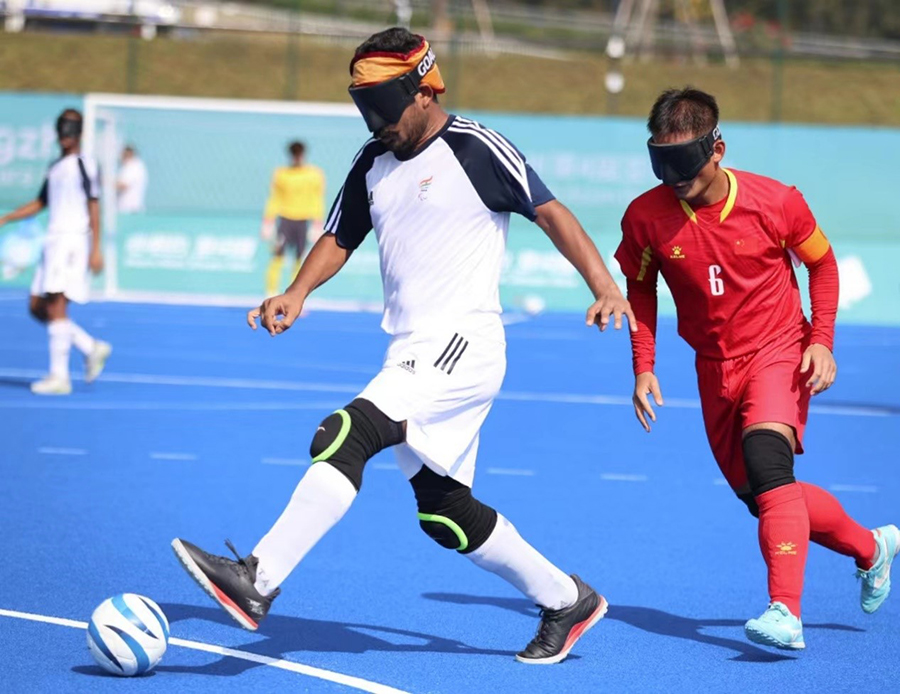 10月23日,杭州亞殘運(yùn)會(huì)盲人足球比賽開賽,首場(chǎng)比賽是中國(guó)盲人男子足球隊(duì)對(duì)陣印度隊(duì)。中國(guó)隊(duì)的綜合實(shí)力更勝一籌,發(fā)動(dòng)了多次頗具威脅的進(jìn)攻,最終以4:0戰(zhàn)勝對(duì)手。