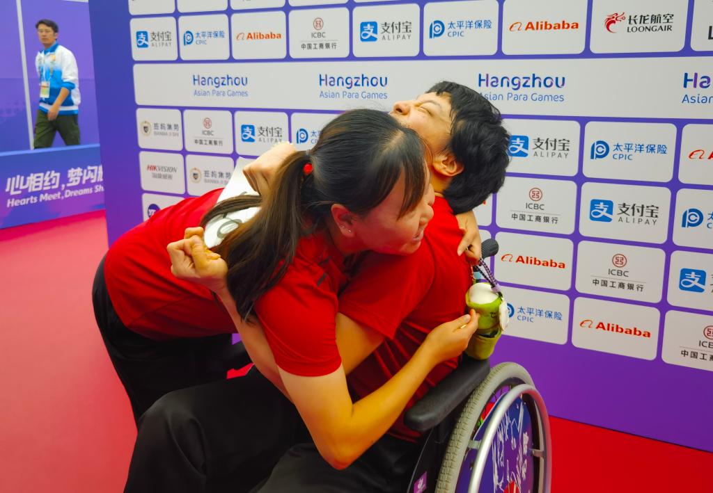 37歲的何麗萍就是其中之一,她是BC3級(jí)運(yùn)動(dòng)員楊貝貝的競賽輔助人員。在25日的女子個(gè)人BC3決賽上,她們獲得了一枚寶貴的金牌。