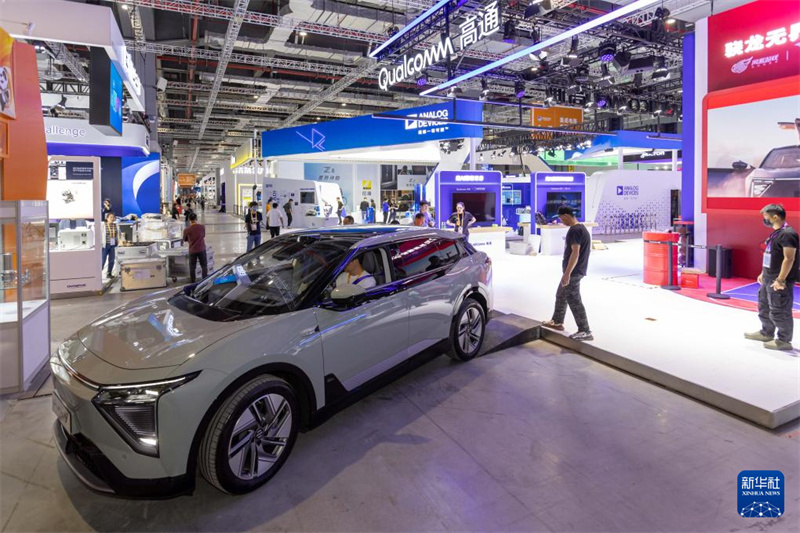 11月2日,一輛搭載高通芯片的智能電動汽車準(zhǔn)備駛向高通展位。