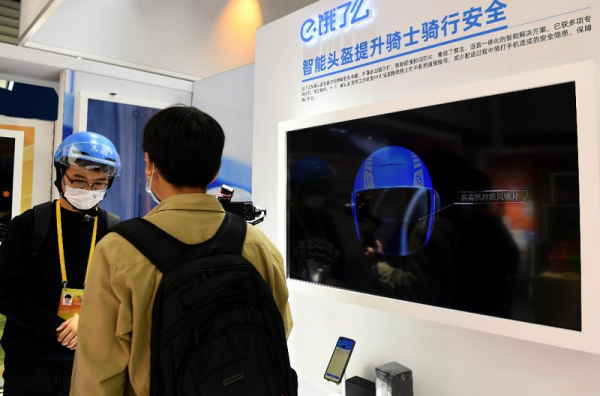 2022年11月8日,互聯(lián)網(wǎng)之光博覽會,媒體記者在體驗智能頭盔